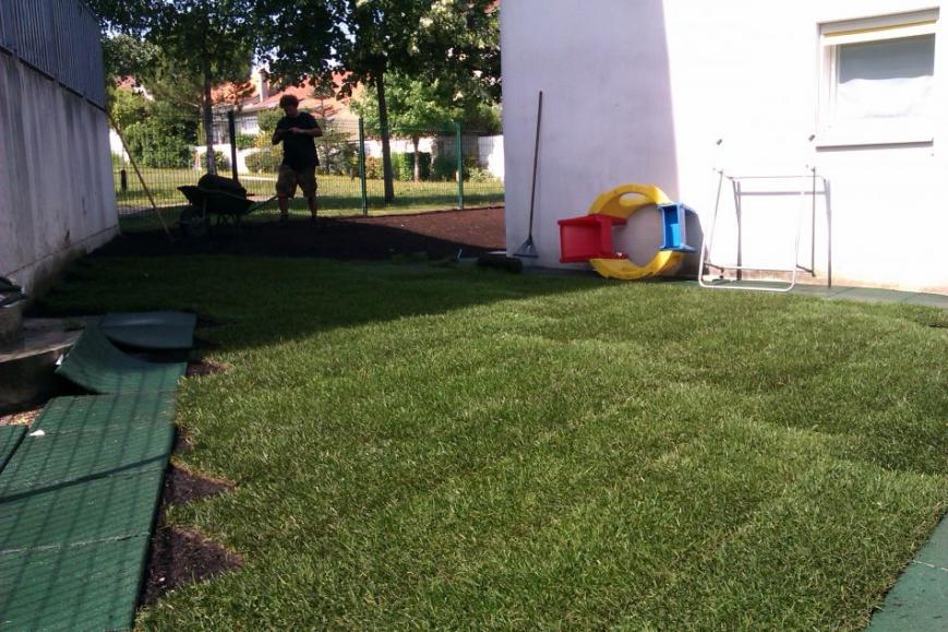 Création : pelouses, massifs, rocailles, plantations, potagers bio, allées.