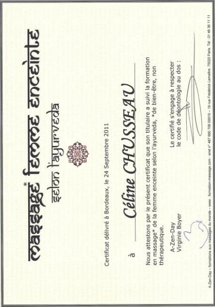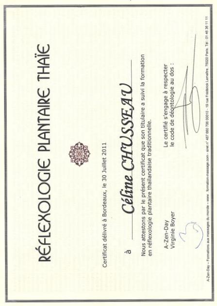 Je suis praticienne de bien être, j'ai été formée à l'Ecole A Zen Day à Paris en 2011.