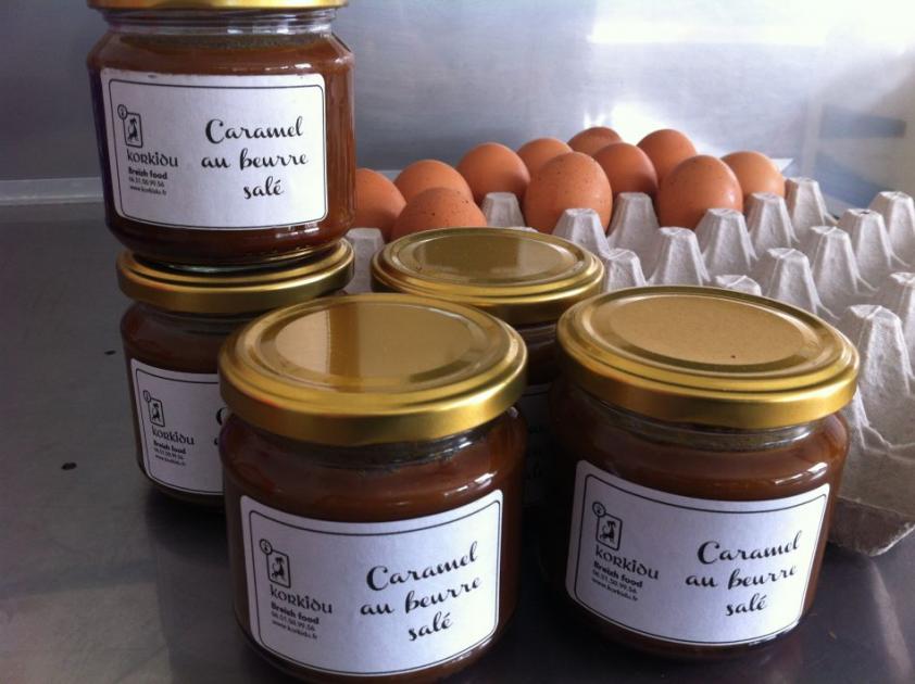 Galettes de sarrasin fraîches ou garnies, crêpes de froment, caramel au beurre salé, far, gâteau breton, shortbread, quatre-quart aux pommes, cidre… saucisse bretonne et kit ha farz sur commande.