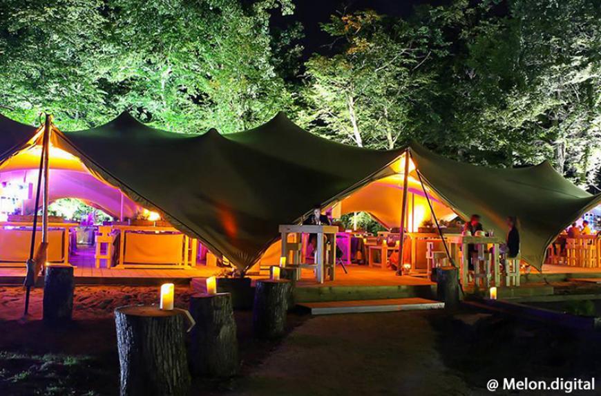 Lieu unique et éphémère au coeur du parc du Domaine de Raba. Ouvert de juin à septembre, les soirs du jeudi au samedi et le dimanche midi.